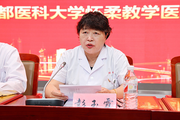 党委书记彭玉霞充分肯定了我院全体教职员工全力投入首都医科大学本科审核评估工作,以强烈的责任感和使命感迎接审核评估工作并取得了优异成绩,赢得了学校的高度评价。随后彭书记宣读了《中共北京怀柔医院委员会 北京怀柔医院关于表彰2023-2024学年优秀教研室、优秀教学管理者、优秀教师、优秀带教教师、优秀学生的决定》,殷切期望全体教师以他们为楷模,积极投身于教学事业,踊跃参与教学职称的申报工作,携手并进,共同推动我院教育教学工作迈向新的高峰。