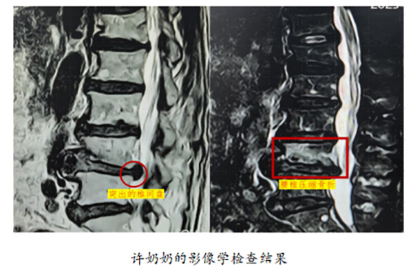 面对这位远道而来的高龄患者,疼痛科主任王利刚主任医师高度重视。他亲自为许奶奶进行细致全面的检查,并迅速为她开启“绿色通道”,优先办理住院手续,让年迈的许奶奶和忧心的家人第一时间安下心来。经过系统性的完善检查,许奶奶被明确诊断为:腰椎压缩性骨折、腰椎间盘突出症、椎间盘源性腰痛。多种腰部问题交织,正是她久治不愈的根源。