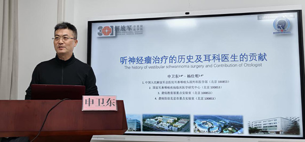 学术交流环节精彩纷呈,各位专家带来了前沿的学术分享与临床经验。申卫东分享了“听神经瘤治疗的历史及耳科医生的贡献”,梳理了听神经瘤治疗的发展历程,剖析了耳科医生在疾病诊疗中的关键作用,让在场医护人员对这一疾病的诊疗有了更系统、更深入的认识。杨淑芝则以“过敏性鼻炎中西医结合治疗”为主题,结合临床案例,深入讲解了过敏性鼻炎的诊疗思路、中西医结合的治疗优势及最新研究进展,为基层临床诊疗提供了新的思路与方法。