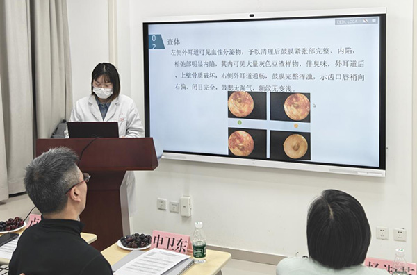 在疑难病例讨论环节,我院耳鼻咽喉科团队提出临床中遇到的疑难病例,全体专家与医护人员展开了热烈的讨论。专家们从病例的诊断、鉴别诊断到治疗方案的制定,逐一进行细致分析与指导,凭借丰富的临床经验和专业的学术视角,为病例的诊疗提供了宝贵的解决方案。