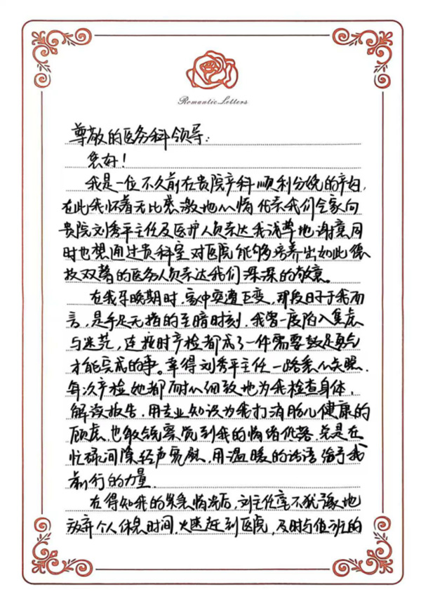 一纸感谢信,浓浓医患情。这封信,是患者对刘秀平及产科全体医护人员的最高赞誉,更是对我院产科医疗服务品质的真诚肯定。
