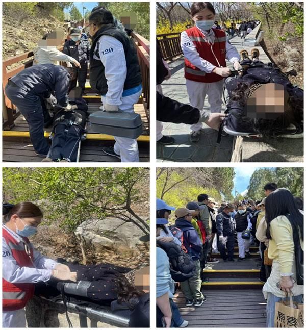 清明小长假,北京怀柔雁栖湖西山步道迎来踏青出游高峰,山水之间春意盎然。4月5日10时23分,北京怀柔医院120分中心接到调度任务,一名游客在步道游览时突发晕倒、呕吐,情况紧急,120车组人员立即出发,争分夺秒奔赴现场,途中医生蔡雲铭电话联系报警人,了解患者情况并指导自救。