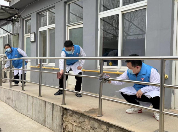 活动第一项,院团委组织团员青年志愿者为青龙湖残疾人职业康复劳动站打扫卫生、整理环境。全体团员统一佩戴团徽,团员和志愿服务队成员身着志愿服务蓝马甲,擦拭站内栏杆和墙壁,清理周边废弃物及卫生死角。团员青年和志愿者们不怕脏、不怕累,将“奉献、友爱、互助、进步”的志愿服务精神进行到底。
