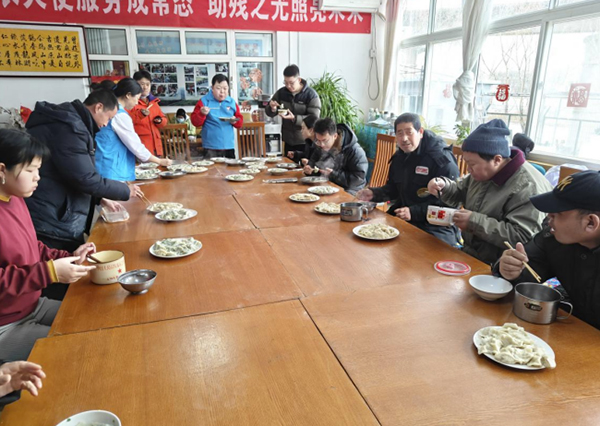 活动最后开展“以饺寄情送祝福 与爱同行祝健康”为残疾人包饺子活动,由院团委团干部、青年志愿者代表及青龙湖残疾人职业康复劳动站残疾人参加。经过一个多小时的努力,一列列排放整齐、造型手法各异的饺子新鲜出炉。忙碌的活动现场充满欢声笑语,处处洋溢着温馨。团员青年及志愿者们与职康站的残疾人和工作人员共进午餐,品尝自己亲手包的饺子,充满着一家人其乐融融的幸福感。